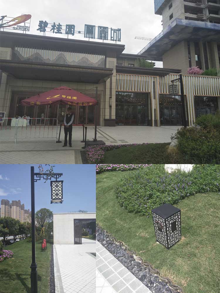 簡(jiǎn)介—— 寶雞碧桂園庭院燈草坪燈項(xiàng)目是我們公司2018年7月完成的項(xiàng)目,燈具采用的是純黑方管燈桿,單挑臂造型光源,復(fù)古典雅,主體顏色與樓體顏色相呼應(yīng),在造型上和視覺(jué)上給人一種一體的美感。