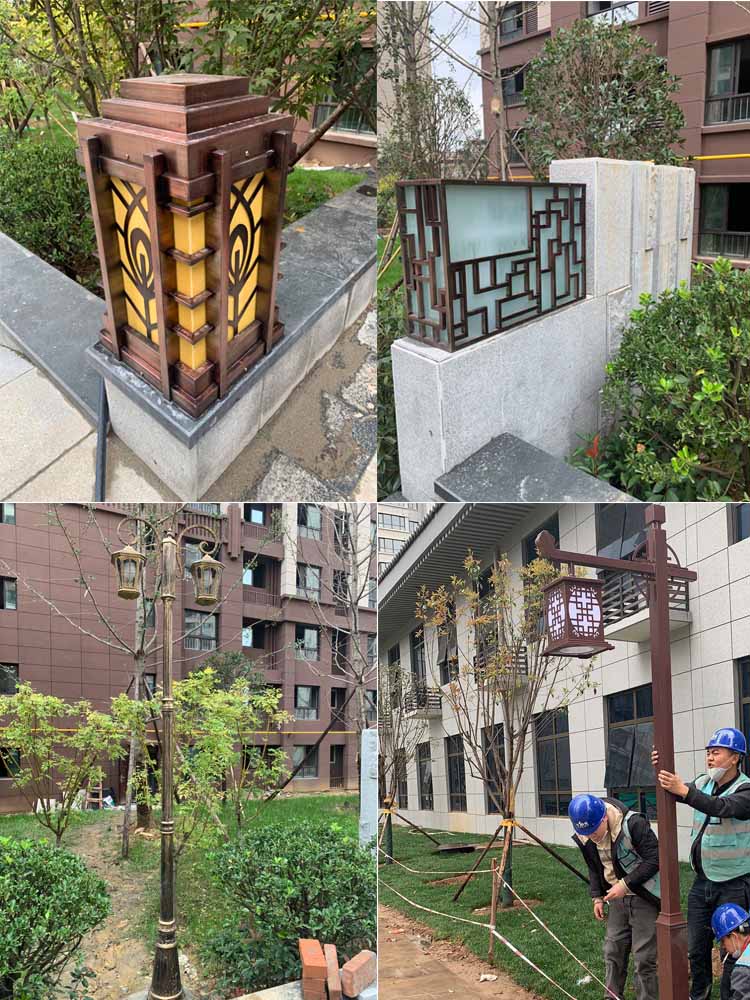 簡(jiǎn)介—— 陜建翠園錦繡庭院燈、柱頭燈項(xiàng)目,是我公司2020年做的地產(chǎn)項(xiàng)目,項(xiàng)目當(dāng)?shù)匚挥谖靼彩虚L(zhǎng)安區(qū)航天大道,該項(xiàng)目的燈具主要是以復(fù)古為主,燈體的顏色采用古銅色,與整個(gè)項(xiàng)目的建筑特點(diǎn)相結(jié)合。