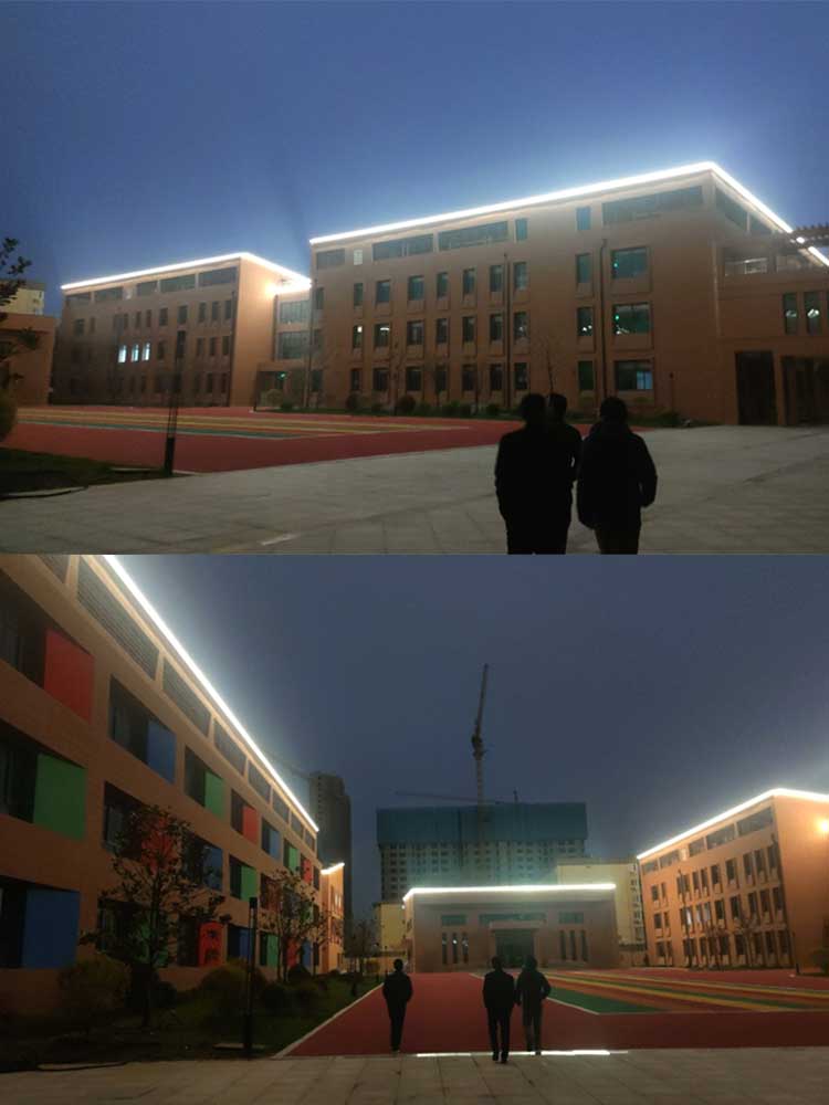 簡介—— 西安市兒童福利院亮化工程,主要是采用線條燈對樓體的頂部和側(cè)面輪廓進行勾勒,主樓安裝十二生肖發(fā)光造型,側(cè)墻采用圖案燈進行動畫投影,打出絢麗多彩的動畫卡通人物,與建筑的實用完整結(jié)合。