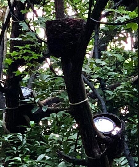 大自然的美,專門用藤條編的鳥巢造型的燈罩。設(shè)計(jì)施工人員告訴記者,樹杈上掛著的“鳥巢”都是用藤條和干草編織而成,鳥巢里不是鳥,而是一盞盞景觀燈,且每只鳥巢的下方都拖著一條直徑約5厘米的“尾巴”,電纜就隱藏在里面。