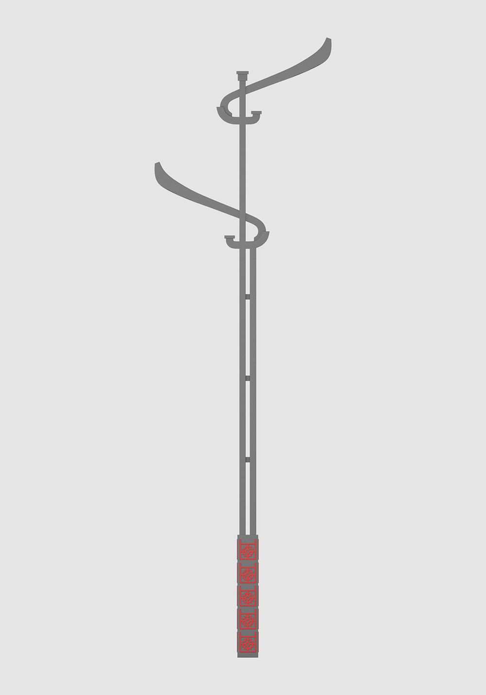 設計要點:經(jīng)歷時許,方知時光易逝,回首前世,聞見不凡簡史,此燈具借鑒傳統(tǒng)建筑中的斗拱樣式,經(jīng)過簡化修改,燈具上部采用方管拼接,錯位焊接,燈頭部分采用優(yōu)美弧度曲線,頂部采用方形裝飾蓋,下部立體圖案,整體簡潔大氣,優(yōu)雅靈動,適合文化氛圍強的區(qū)域。